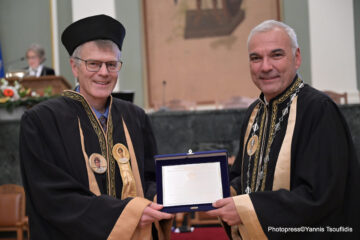 Prof. Robert Schober received an Honorary Doctorate (Doctor honoris causa) for his contributions to wireless and molecular communications from Aristotle University of Thessaloniki, Greece. The degree was awarded in a solemn ceremony on December 19, 2024. After Profs. Markos Papageorgiou and Athanasios Papoulis, Prof. Schober is the third faculty from the field of electrical and computer engineering to receive an Honorary Doctorate from Aristotle University. Founded in 1925, Aristotle University is the second oldest university in Greece. Named after the philosopher Aristotle, who was born in Stagira, about 55 kilometres east of Thessaloniki, it is the largest university in Greece with more than 90,000 students. Its campus covers 230,000 square metres in the centre of Thessaloniki, with additional educational and administrative facilities elsewhere.
